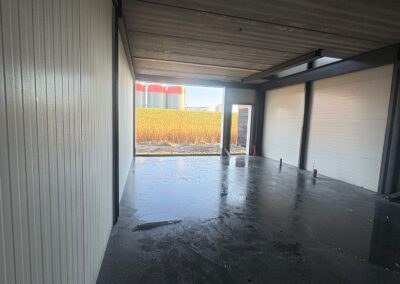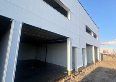 Momenteel is de elektricien volop aan het werk. Binnenkort worden de glazen puien, overheaddeuren en overige kozijnen geplaatst, waarmee het project de afrondende fase nadert.
