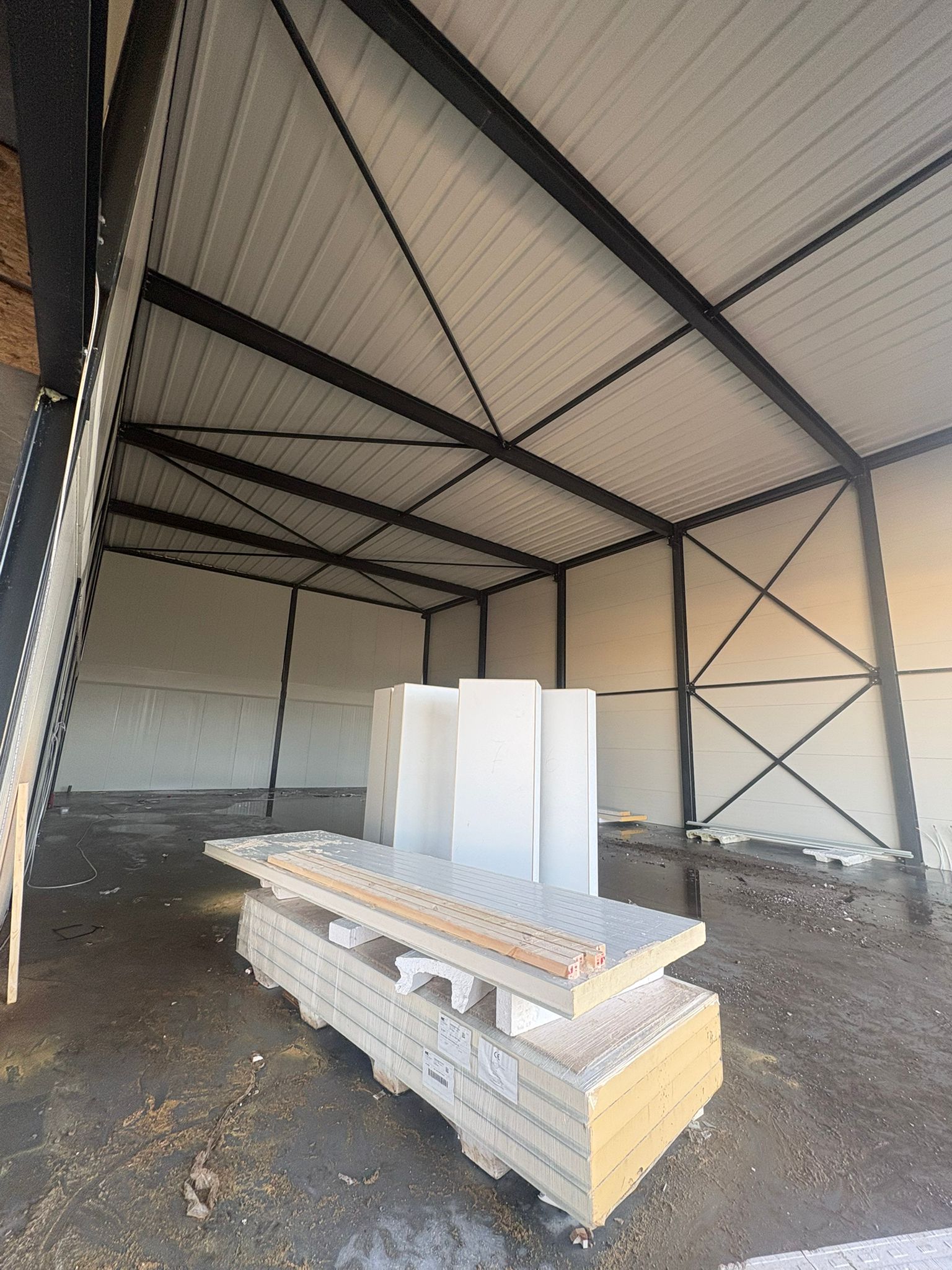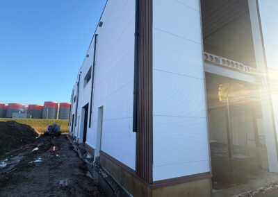 In de periode rond kerst en de start van het nieuwe jaar zijn grote stappen gezet. Het pand is volledig voorzien van sandwichpanelen met de juiste isolatiewaarde en vrijwel alle tussenwanden zijn geplaatst. Daarnaast is het leidingwerk voor de meterkasten aangebracht en is het betonwerk op de begane grond afgerond.